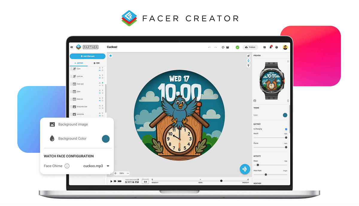 The feature is available to all designers in our Facer Creator Partner Program today, and we expect thousands of new faces to roll out with Face Chimes in the next few weeks.