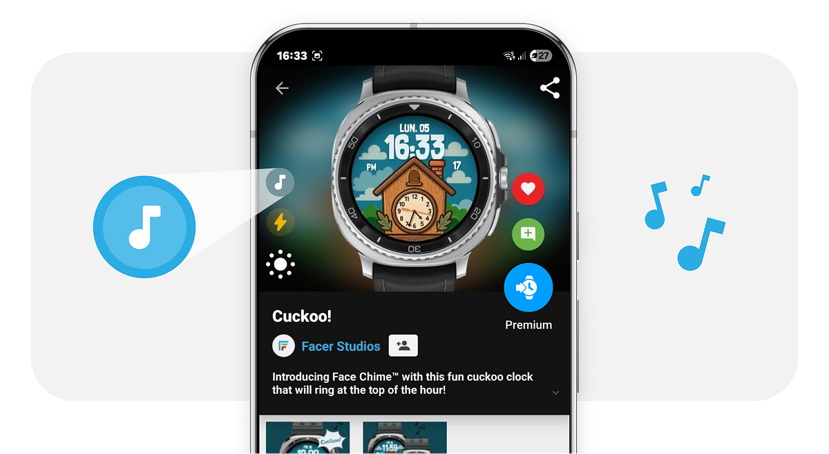Thousands of watch faces from top brand partners and the best independent designers in the world are getting updated with Face Chime, an hourly chime customized to your current watch face, giving even more personality to your smartwatch!